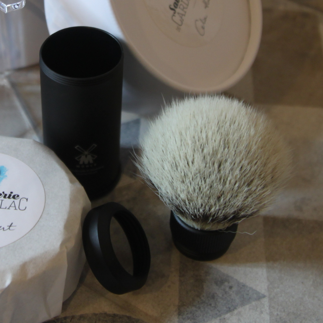 Avec le blaireau de voyage de MÜHLE, vous n'aurez plus à vous priver du plus beau des rituels matinaux, même en voyage. La poignée est fabriquée en aluminium anodisé noir et est très légère, tout en tenant confortablement dans la main. La tête peut être facilement retirée et rangée dans le manche pour ne pas prendre de l’espace. La qualité de cheveux Silvertip Fibre® est aussi agréable à emporter en voyage, car la fibre sèche rapidement et est beaucoup plus durable que les cheveux naturels. Le fonctionnel peut être si beau !