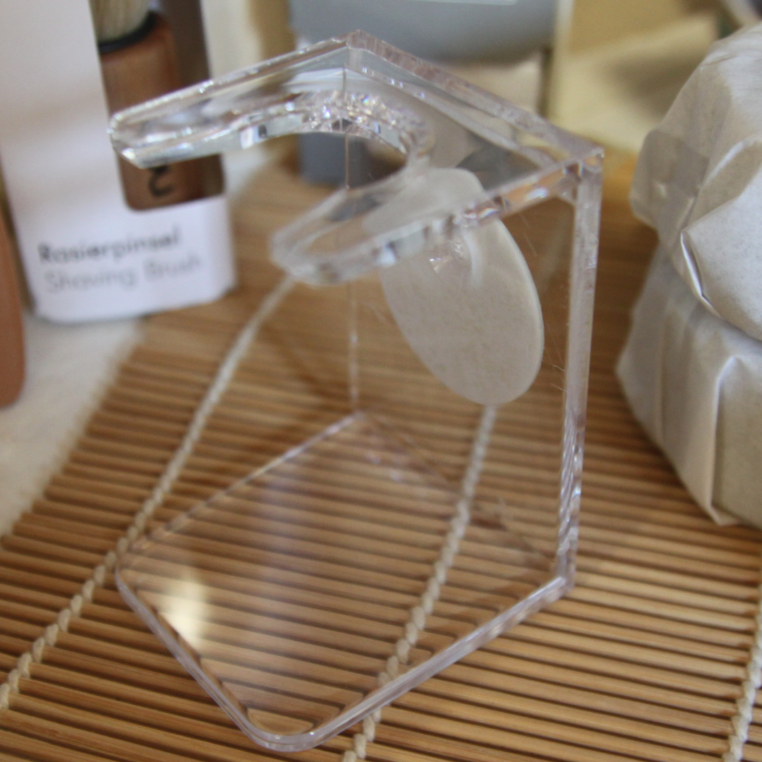 Ce support blaireau est fait pour le maintien tête en bas de tous les blaireaux dont le diamètre est de 2,1 cm comme ceux de la marque Nom. Le diamètre d'un blaireau se mesure à la base du pinceau. Dans cette position, votre blaireau de rasage rincé se videra de l'eau qu'il contient. Il reposera sur ce support sans tomber et sera en parfait état pour le prochain rasage. Ce support blaireau Nom est en acrylique transparent, ce qui lui confère un effet cristallin design. Vous avez le choix entre le laisser sur le lavabo ou le poser contre un mur grâce à son adhésif fixant à l'arrière. Un petit accessoire aussi chic que fonctionnel.
