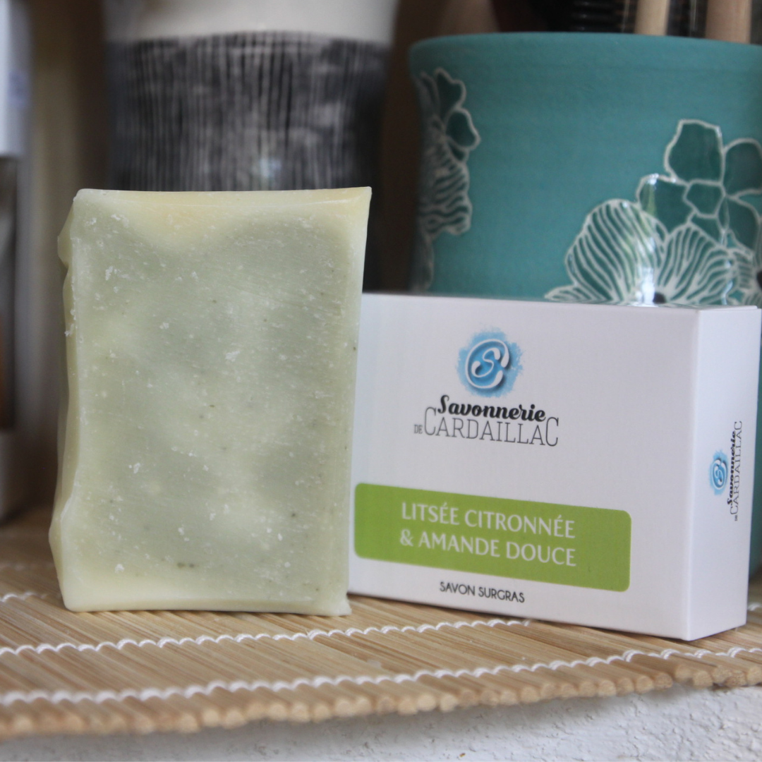 et parfumé à l'huile essentielle de litsée citronnée et d'une note de géranium bourbon.