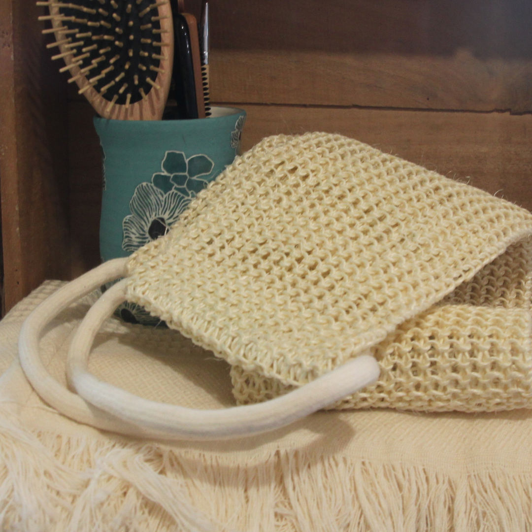 Bande de massage, sisal tricotée avec manche en coton