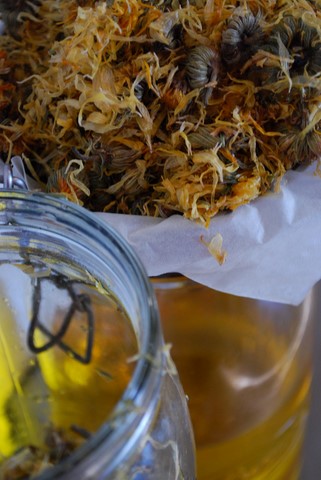 Huile de calendula : Huile de tournesol : Haute Garonne, fleur de souci bio : France